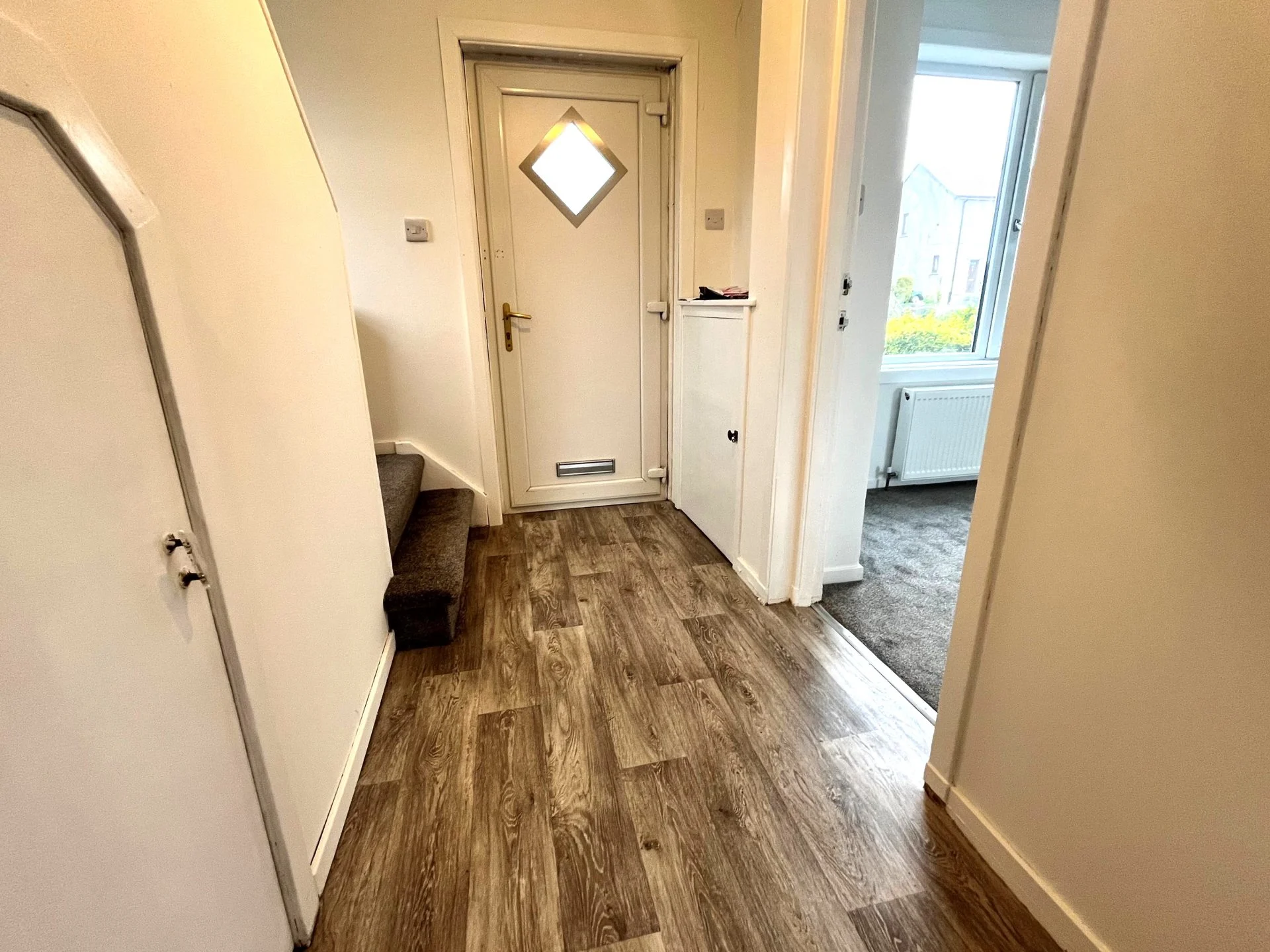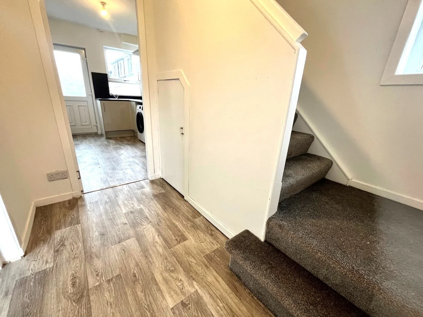 The accommodation comprises of: Entrance hall with built-in under stair storage cupboard; spacious lounge with ample space for dining area; fully fitted & equipped kitchen with built-in storage cupboard and access to the rear garden, equipped with washing machine, freestanding fridge freezer electric hob and oven. Carpeted stairway leading to Upper Floor: Landing with side window; master bedroom with mirror built in wardrobes and 2 storage cupboards; second double bedroom to rear of property; shower room with electric shower.
