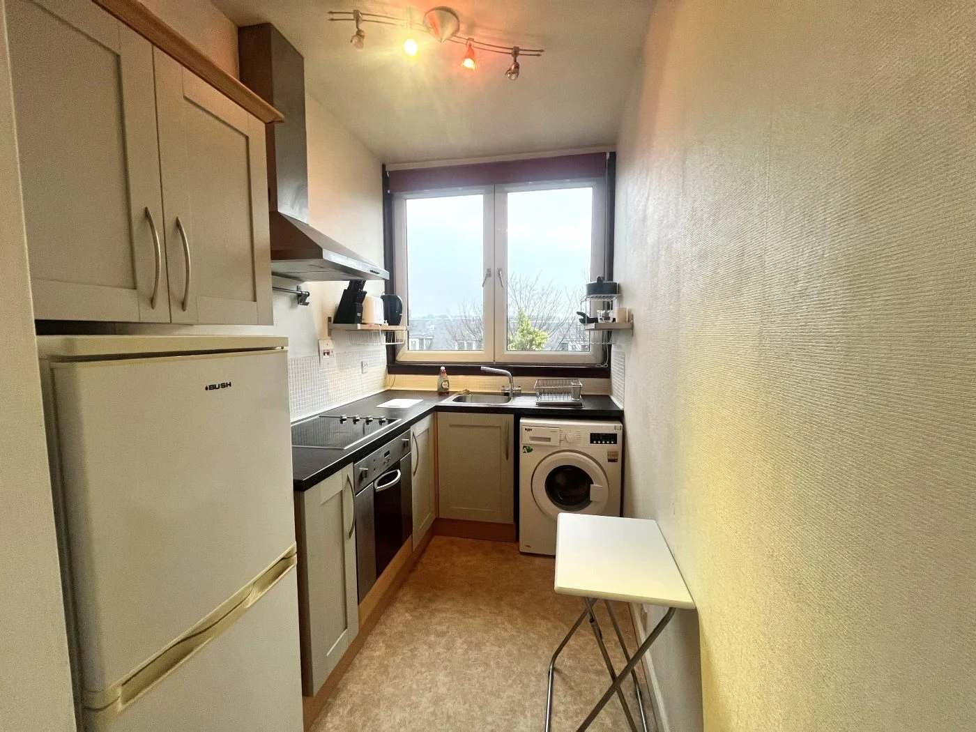 The accommodation comprises of: Entrance hall providing access to all rooms; spacious lounge with dining space and built in storage cupboard; fully equipped kitchen, fitted with a range of wall and base units, electric hob and over, washing machine and freestanding fridge freezer; large bedroom with freestanding wardrobe, built in storage cupboard and study desk space; bathroom with electric shower.