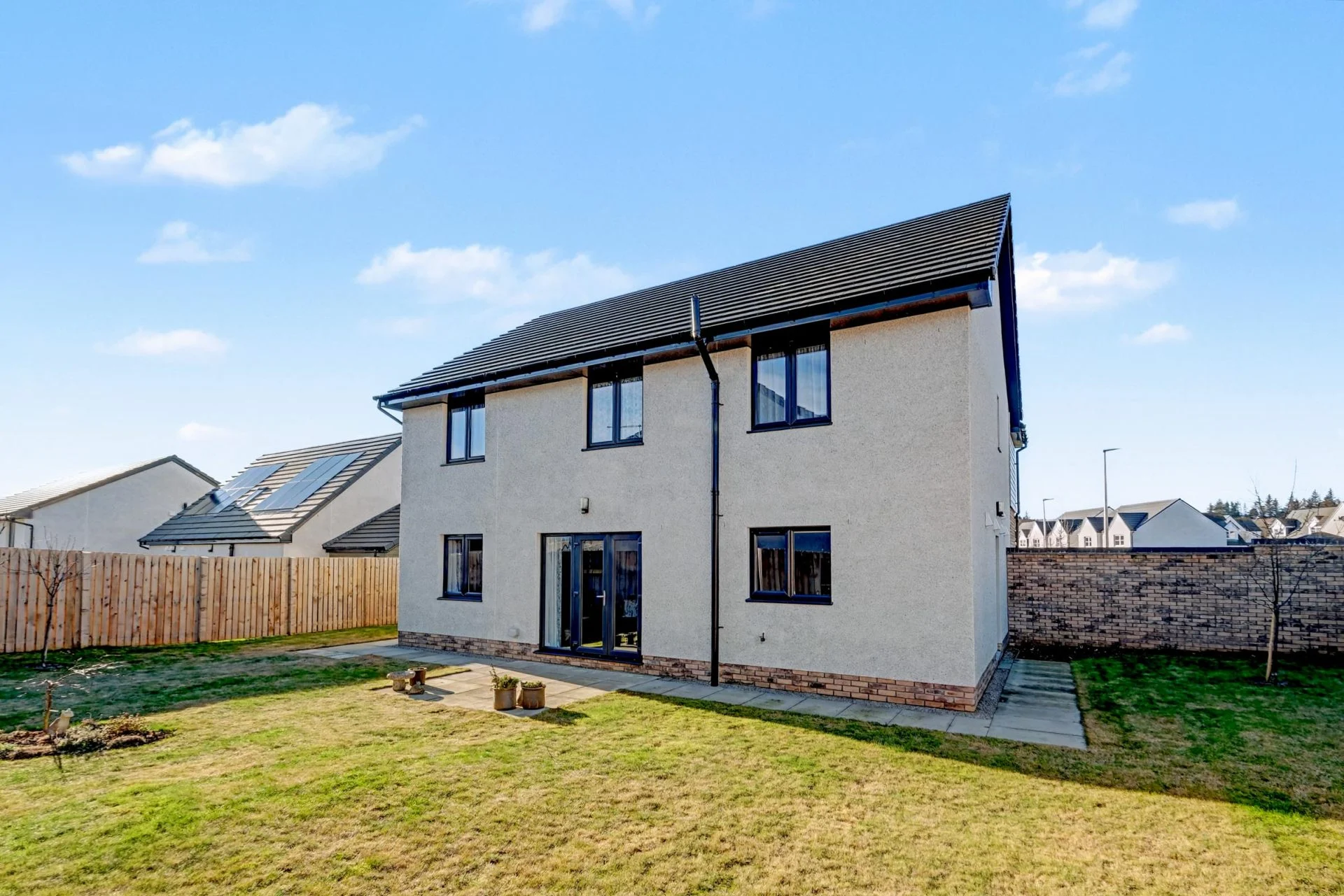 Travelling on the A944, Aberdeen to Alford road, continue through the village of Alford and on leaving the village, turn left at the sign post for the Community Campus. Continue ahead, turning left onto Greystone Road. Continue to the bottom of this road and turn left into Baillie Drive. Follow this road through the development and number 49 is located on the left hand side as indicated by our For Sale sign.